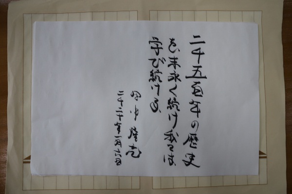 杨颖校长代表学校与田中隆充教授达成初步合作意向,并向田中隆充教授赠送了学校“国礼”——“和合”。“两千五百年的历史,让我们共同学习,共同传承。”田中隆充教授提笔这样写道,言辞中充满了对鲁班文化的尊崇,以及对合作的期待。