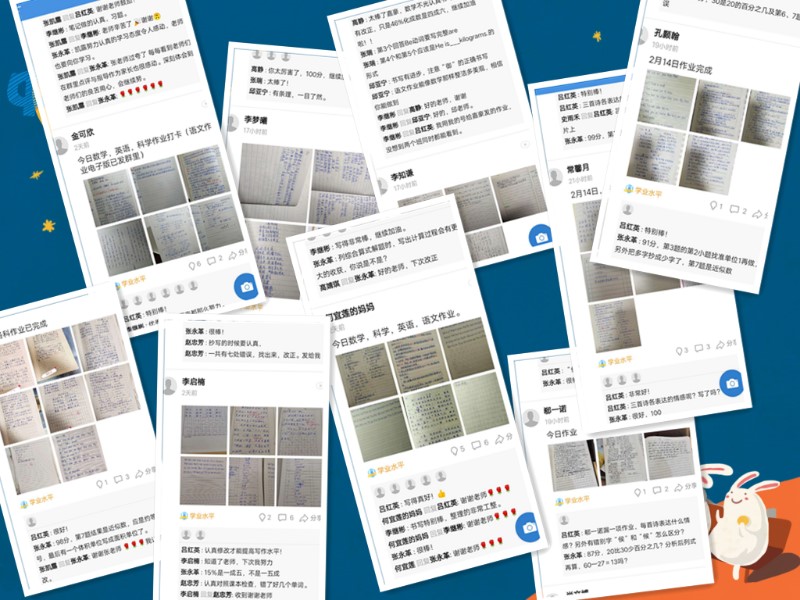 为弥补“空中课堂”讲多练少,拔的高砸不实等问题。北关小学以年级教研组为单位,集体研讨,合理优化,精心设计课堂作业,并充分利用教育云平台“人人通空间”班级圈,对学生作业精心评改。做到每份作业有评价,每天作业有反馈,错误作业有复批,并通过周末检测落实“周周清”,确保教学质量不“打折”。