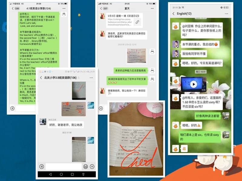 疫情当前,面对线上授课的现实和“空中课堂”这个新鲜事物,一开始,家长们是手忙脚乱的。如何打开,如何使用,如何解决网络问题,一时间让家长焦虑不已。面对上述问题,北关小学成立了网络技术小组,首先对全体教师进行培训。随后班主任老师以电话沟通,视频连线,微信交流等多种形式,指导家长学生解决技术问题,保障线上学习顺利进行。