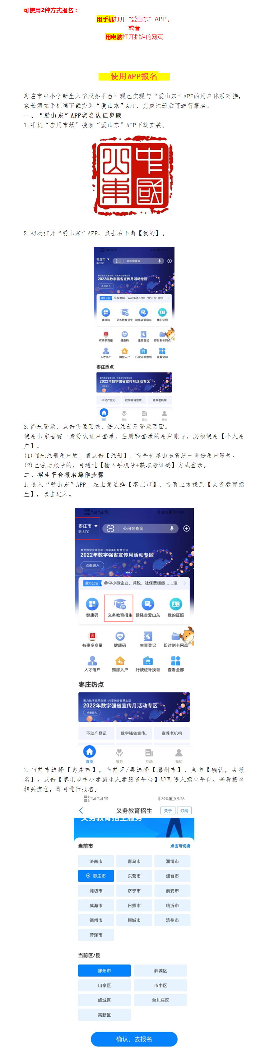 枣庄市招生平台【家长端用户手册】