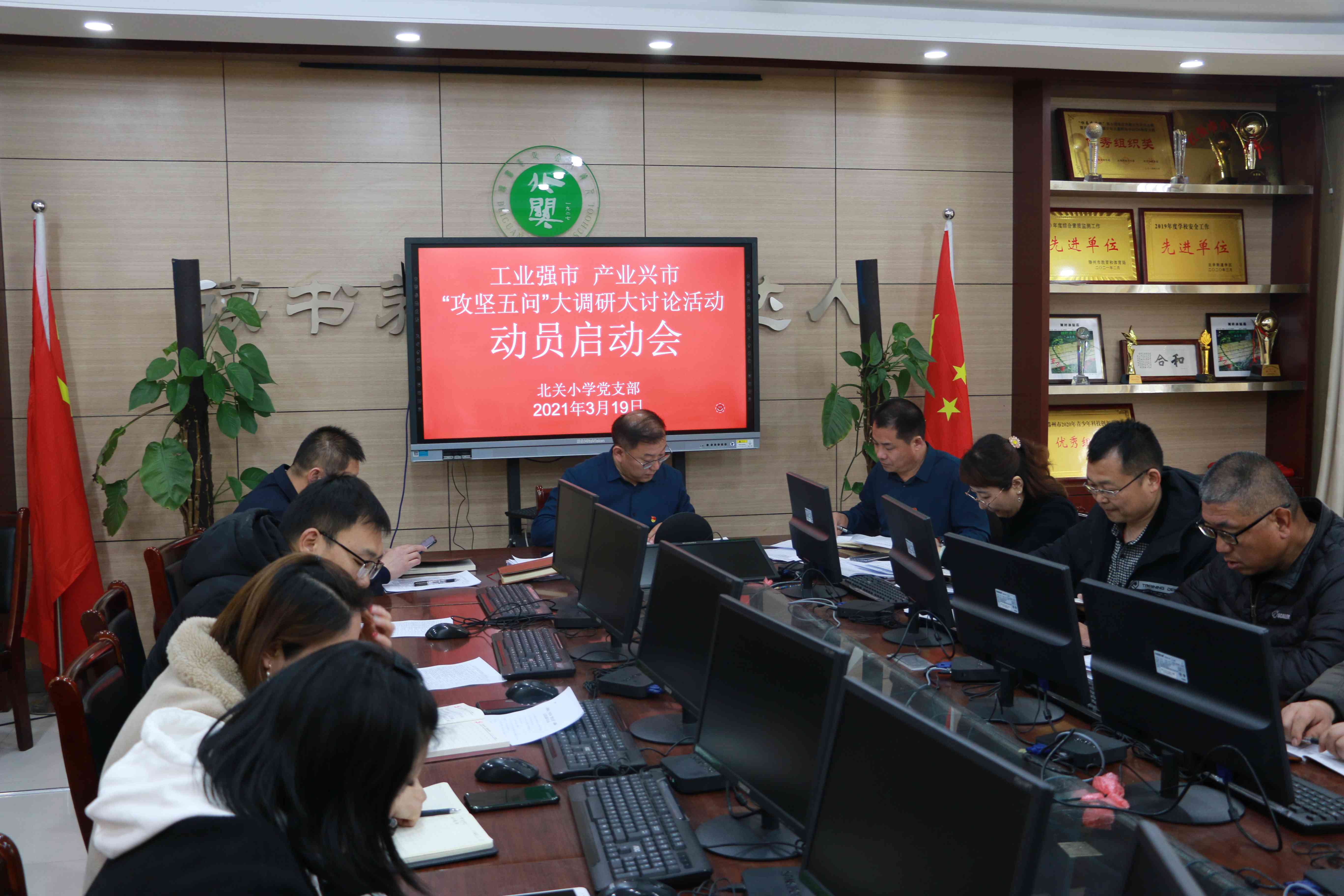 3月17日,北关小学党支部召开党员会议,开展工业强市、产业兴市“攻坚五问”大调研讨论活动暨学习党史活动启动会。活动学习了中共滕州市委教育工委《工业强市、产业兴市“攻坚五问”大调研大讨论活动实施方案》并集中学习了习近平同志在党史学习教育动员大会上的讲话---《学党史悟思想办实事开新局 以优异成绩迎接建党一百周年》,与会党员认真听取活动要求以及学习内容,结合个人实际,分别谈了认识并撰写心得体会。