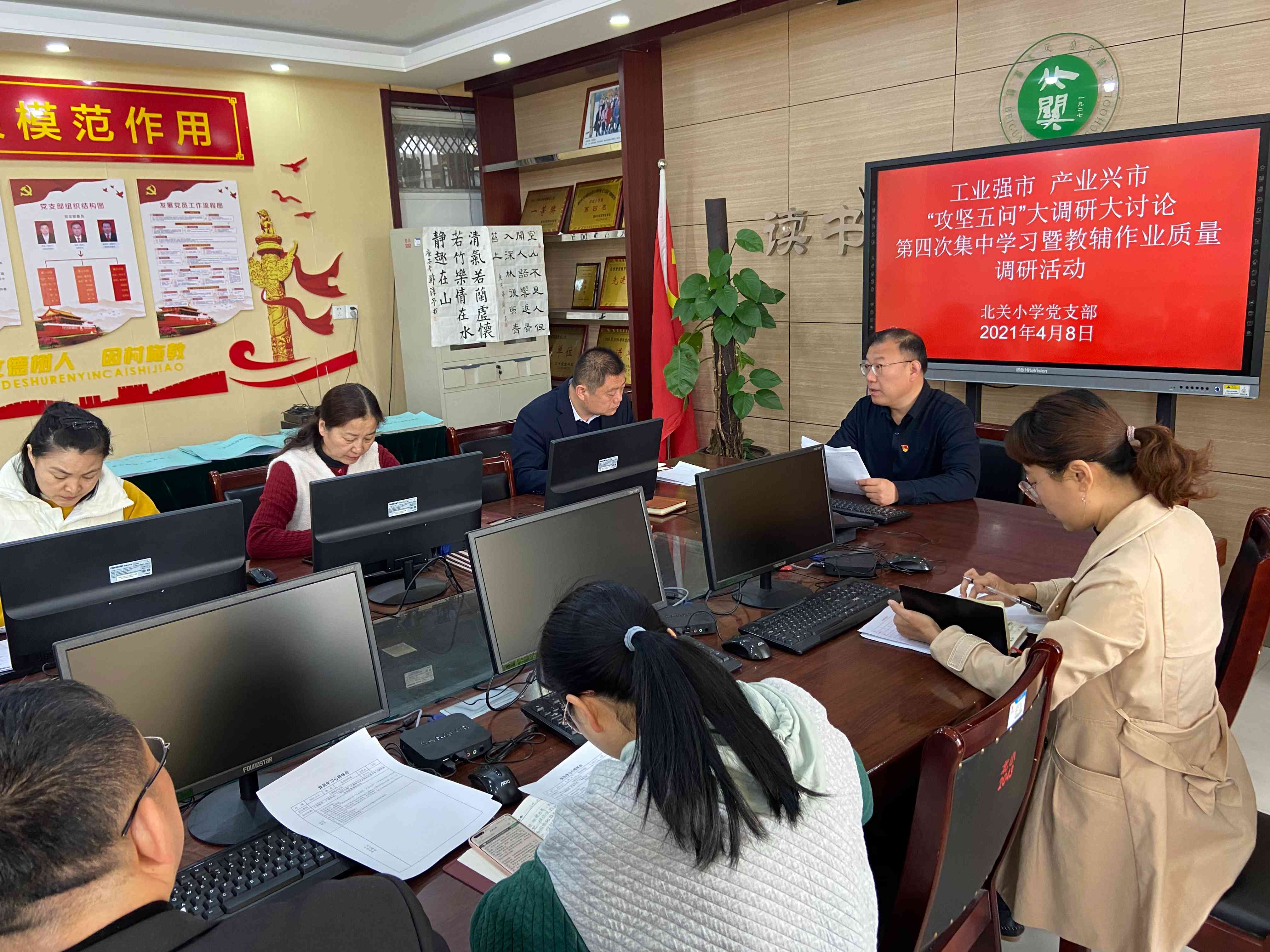 3月28日,北关小学党支部开展工业强市、产业兴市,“攻坚五问”大调研大讨论第四次集中学习暨教辅作业质量调研活动,会议集中学习了陈平同志在枣庄市“工业强市、产业兴市”三年攻坚突破行动动员大会上的讲话精神、习近平同志在中央党校建党建校八十周年庆祝大会暨二0一三年春季学期开学典礼上的讲话《知史爱党,知史爱国》及《习近平同志重要讲话《学习党史、国史是坚持和发展中国特色社会主义的必修课》,与会党员认真听取活动要求以及学习内容,结合个人实际,分别进行了交流发言并撰写心得体会。