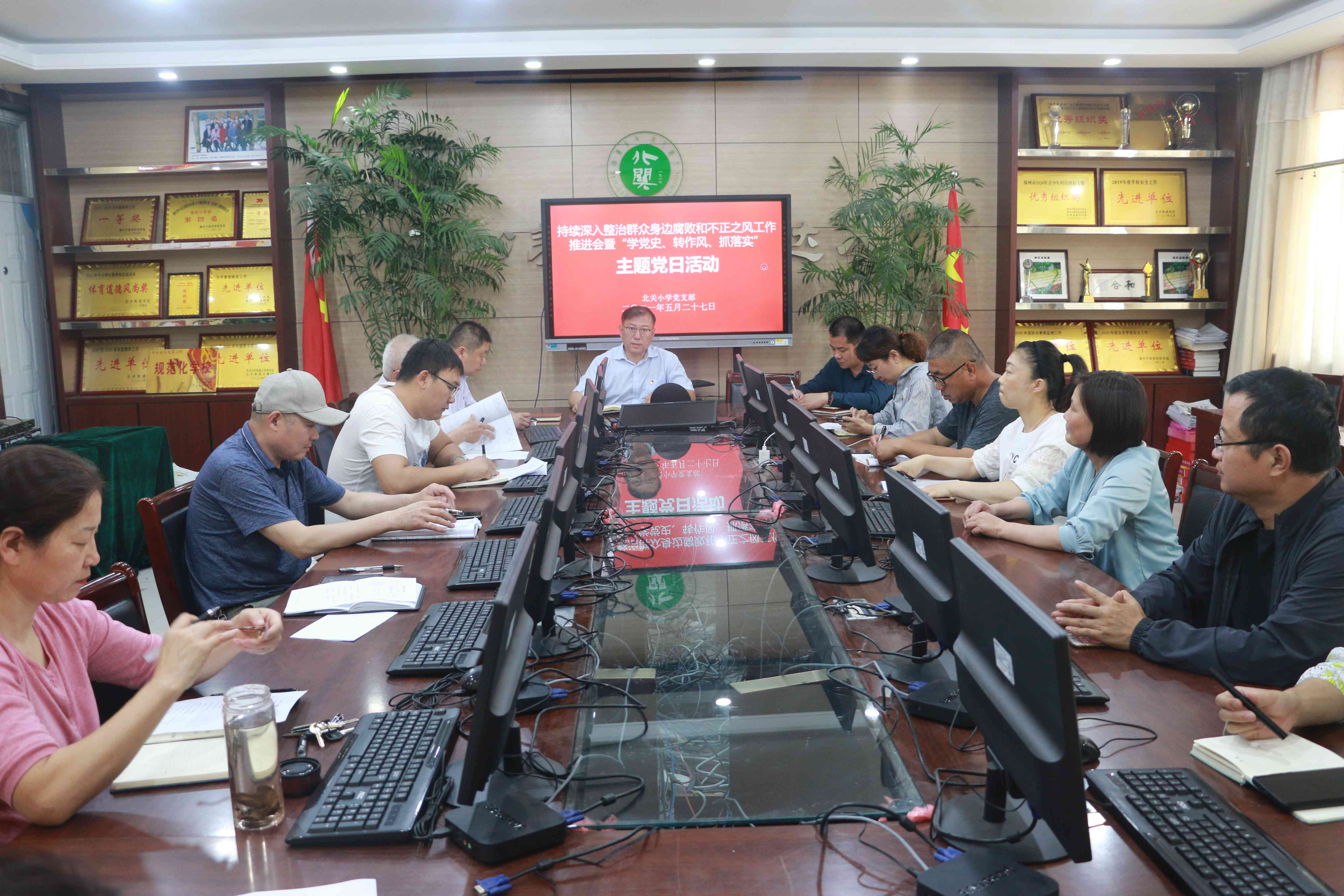 5月27日,北关小学党支部开展持续深入整治群众身边腐败和不正之风推进会暨“学党史、转作风、抓落实”主题党日活动,会议集中学习了中共滕州市委教育工委《关于开展“学党史、转作风、抓落实”主题党日活动的通知》、滕州市教育和体育局《关于持续深入整治群众身边腐败和不正之风的工作方案》及中共滕州市委党史学习教育领导小组《关于组织收看<光耀齐鲁-100个山东优秀共产党人的故事>的通知》并观看微纪录片《光耀齐鲁:王尽美》、《光耀齐鲁:邓恩铭》,与会党员认真听取观看学习内容,结合个人实际,分别进行了交流发言并撰写心得体会。