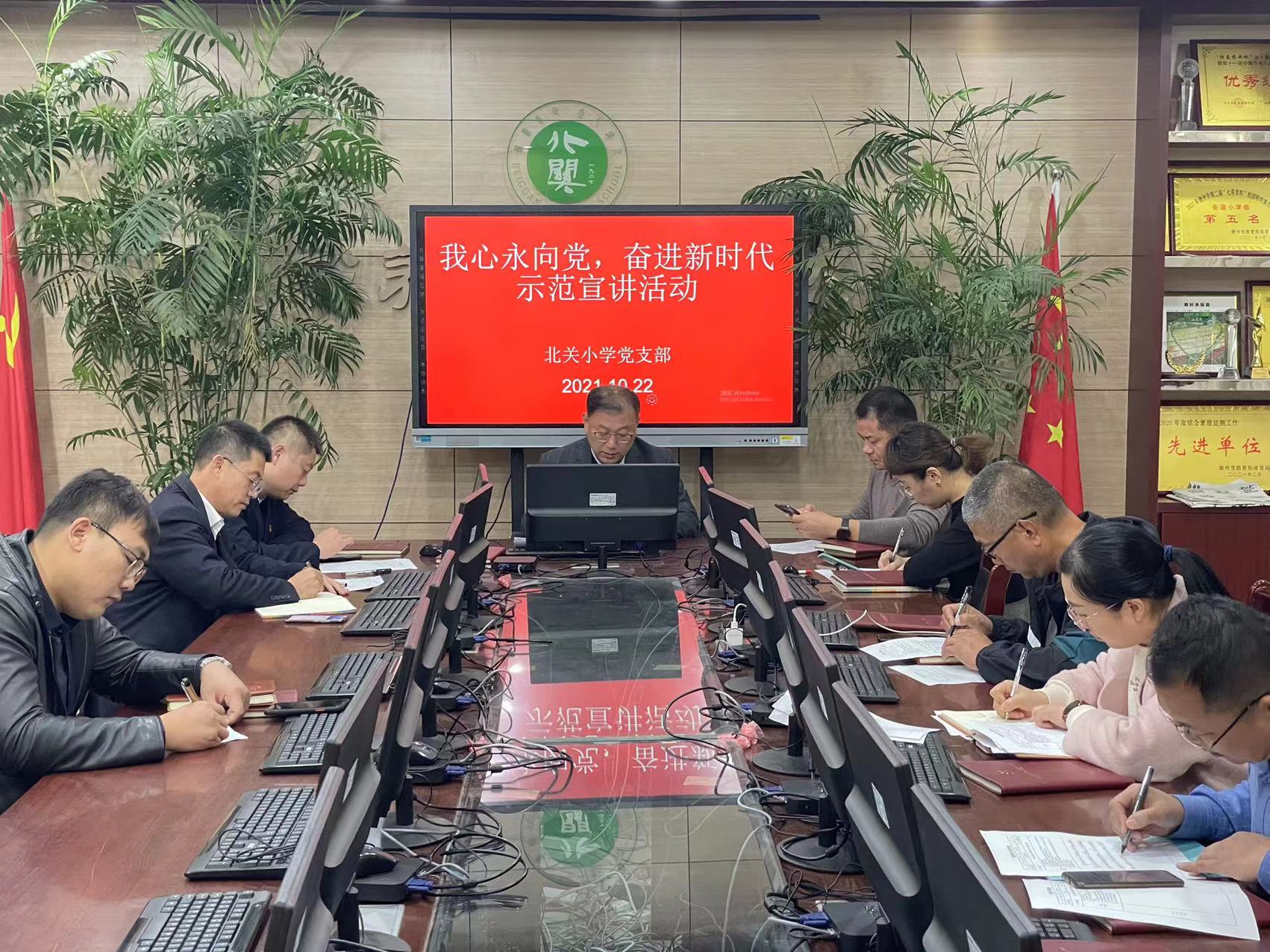 10月22日,北关小学党支部开展“我心永向党,奋进新时代”示范宣讲活动,会议集中学习了中共滕州市委教育工委《关于在学校安全工作中充分发挥基层党组织战斗堡垒作用和广大党员先锋模范作用的通知》、枣庄市委党史学习教育领导办公室《关于开展“我心永向党,奋进新时代”示范宣讲活动的通知》及《中国共产党简史—坚持党的全面领导和提高党的建设质量》,接着由季云同志、李超同志分别作示范宣讲,与会党员认真听取学习内容,结合个人实际撰写心得体会。
